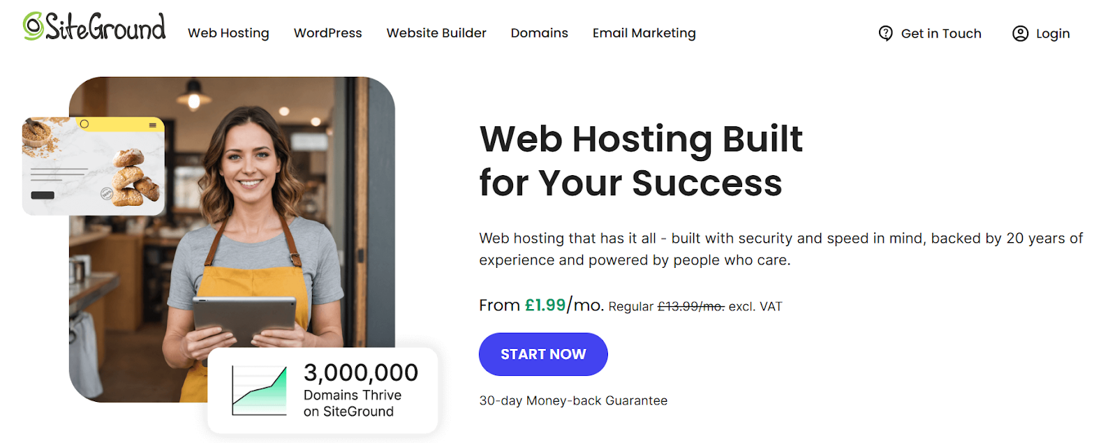 SiteGround is popular for its managed WordPress hosting services, but it also offers robust email tools as part of its web hosting plans. This is great for users who want their website and email handled together, but unlike competitors like Fasthosts and IONOS, Siteground doesn’t offer a standalone email hosting service in addition to their bundled website and email hosting, which reduces its overall flexibility.