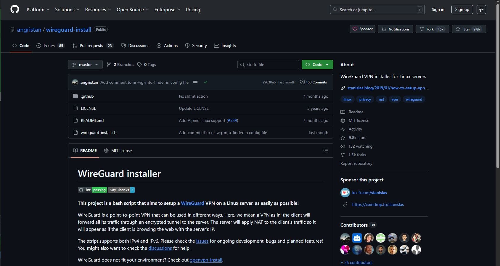 The software we’re using to install the VPN in this guide is called WireGuard. This is an open source software that allows you to set up a VPN. Instead of installing WireGuard manually, you can use the community resources that are available. Follow the link here to go to the GitHub page for installation script. It’s worth noting here that there are of course always risks when running random script you find on GitHub. In this case, that risk is relatively low as this is highly recommended, but just something to keep in mind when you do this.