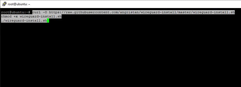 Copy the curl command under ‘Usage’ into your terminal. This will install the WireGuard installation script.
