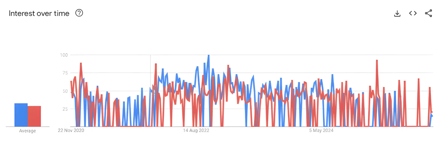 What it does show is that interest in both skills is steady. When searches drop for one, the other usually dips too, which suggests that demand for PHP and JavaScript tends to follow the same overall pattern. This makes sense, as both languages are used widely across the web and remain important in everyday web development work.