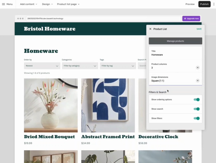 Fancy mixing up the layout of your products? Need to amend a title or image? Easy peasy. The new widget controls on Website Builder mean you can control exactly how your listings sit on your website, what shape/size the images are, change the title text and switch up the filters. Customers will only see your products how you want them to be seen.