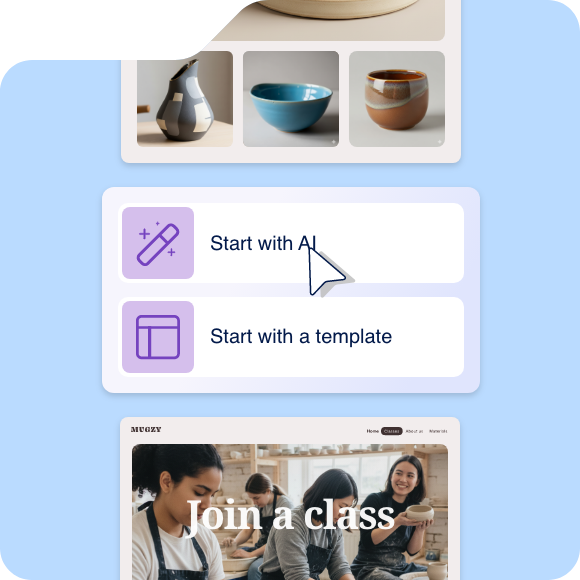 Use AI to create a site in seconds, or start with a blank slate and use a template for complete creative control.